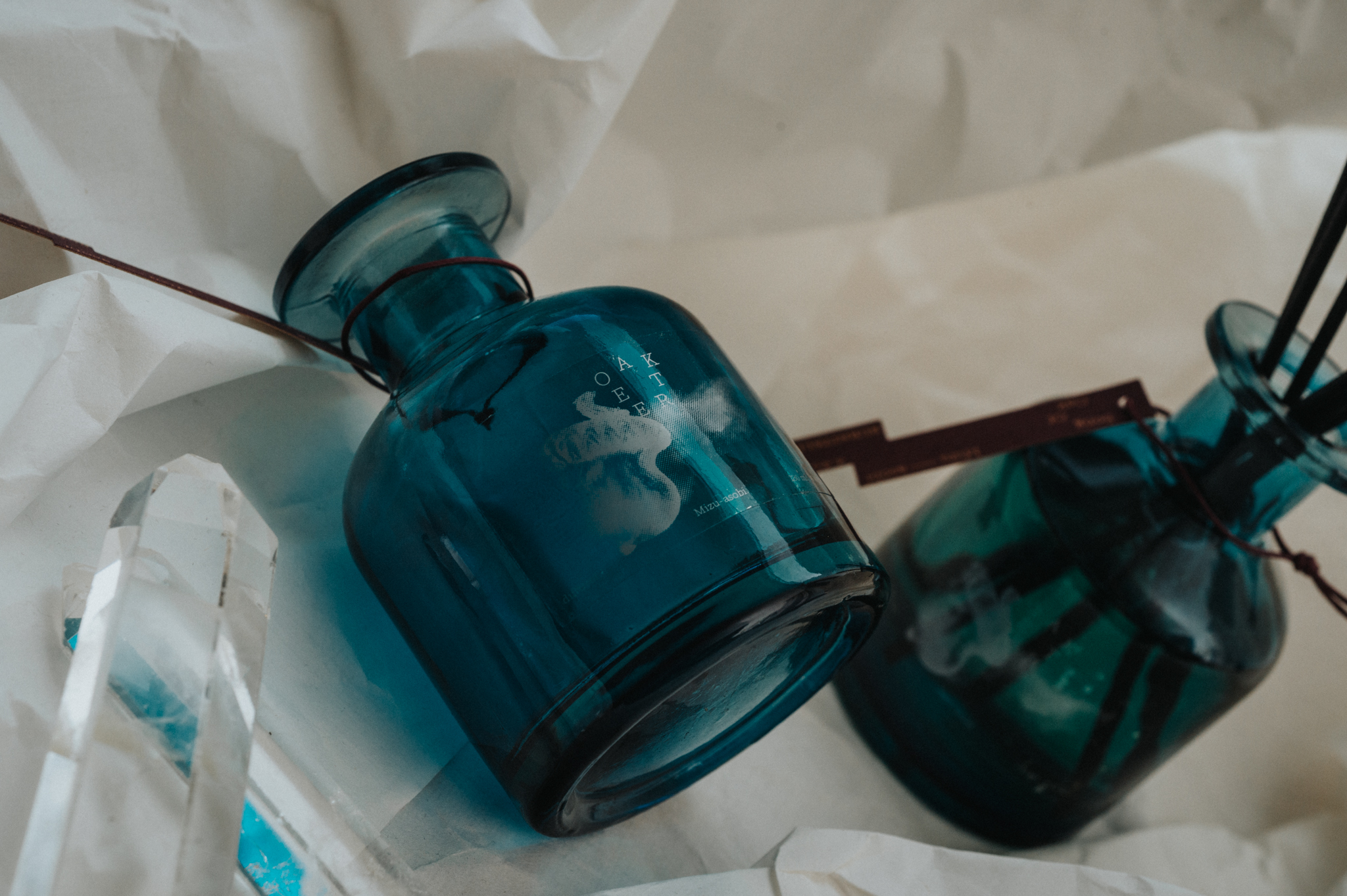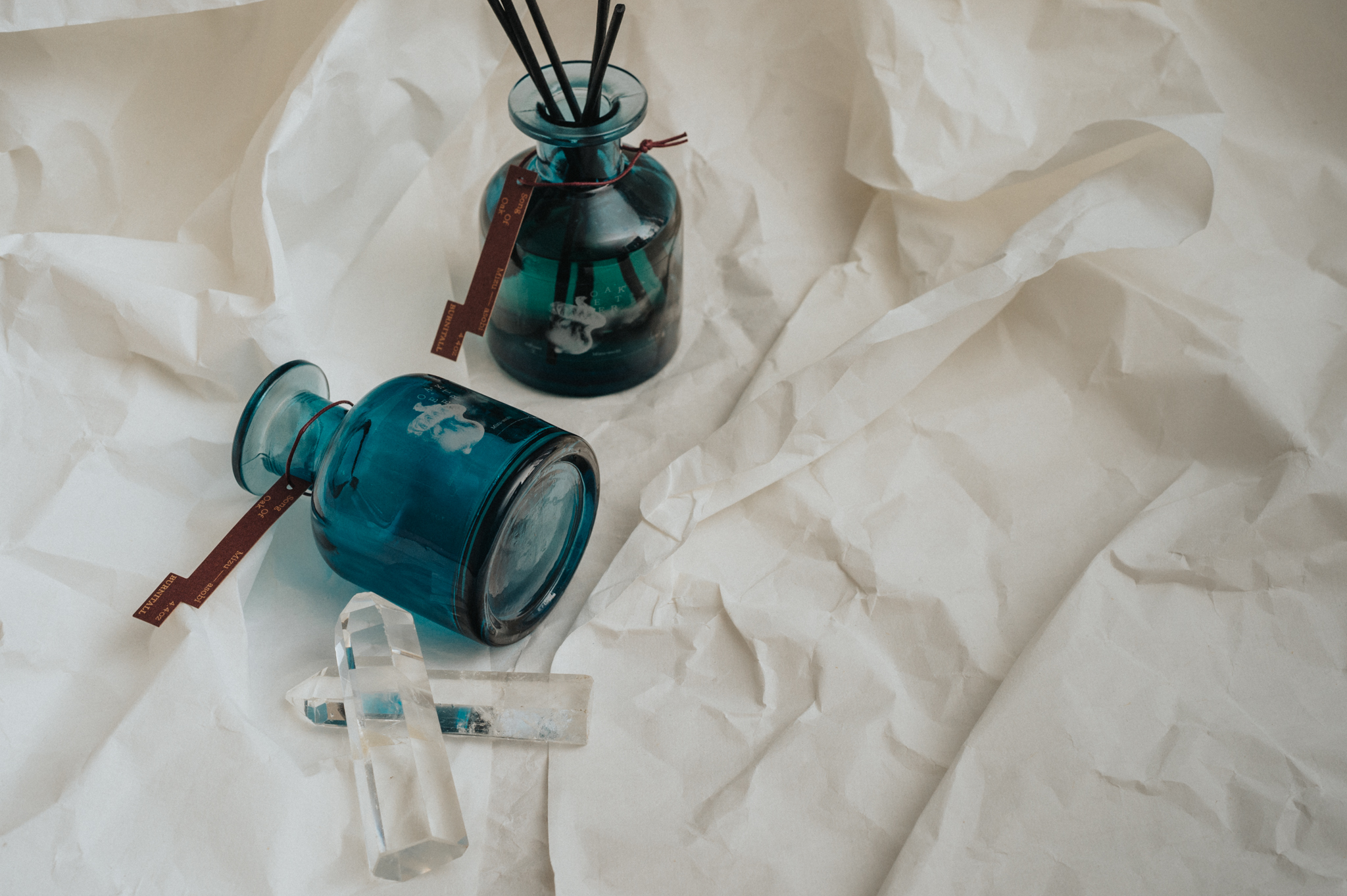 - 將擴香溶劑從鋁罐倒入玻璃瓶器,插上擴香枝